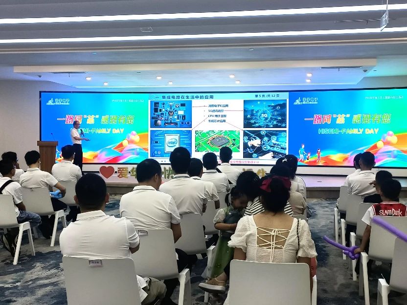 隨后,華宇電子研發(fā)部高級經(jīng)理王釗向家人們作半導體知識科普,為了讓孩子更加清晰了解什么是半導體,王經(jīng)理以身邊常用的電子設(shè)備為例,勾起了孩子們的興趣。他們認真聆聽,時不時與家長互動溝通,一片幸福祥和景象。